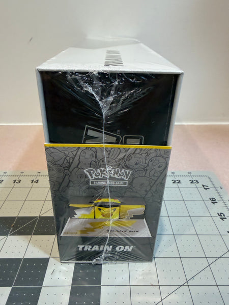 Celebrate 25 years of Pokémon with two of the Pokémon world's best-loved icons: Charizard and Pikachu! This fantastic collection includes a massive set of Pokémon TCG: Celebrations boosters as well as commemorative Pikachu and Charizard cards made of solid metal, showing these characters as they first appeared in the Pokémon TCG! And that's not all: There's also an awesome guide to game mechanics through the history of the Pokémon Trading Card Game, playable promo cards featuring Poké Ball and Pikachu V in glimmering etched gold, additional surprises with even more Pokémon TCG booster packs, and much more!